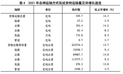 [29]貨物運輸總量及周轉(zhuǎn)量包括鐵路、公路、水路、民航和管道五種運輸方式完成量,2021年增速按可比口徑計算。