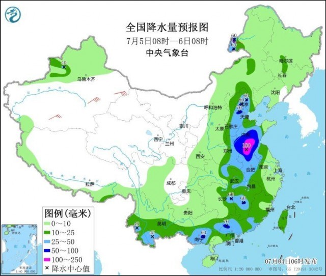 明天,內(nèi)蒙古中東部、京津冀、黃淮中東部、西南地區(qū)南部、江淮大部、江漢東部、江南中東部、華南大部、臺(tái)灣島等地的部分地區(qū)有中到大雨,其中,山東中南部、河南東部、安徽北部、江蘇北部、京津冀、廣東北部等地的部分地區(qū)有暴雨,山東南部、安徽北部、江蘇北部、河南東部等地局地大暴雨(100~180毫米)。