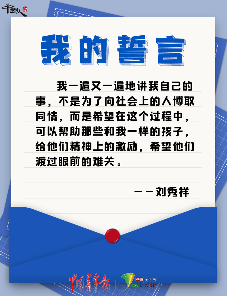 他說:“我一遍又一遍地講我自己的事,不是為了向社會(huì)上的人博取同情,而是希望在這個(gè)過程中,可以幫助那些和我一樣的孩子,給他們精神上的激勵(lì),希望他們渡過眼前的難關(guān)。”
