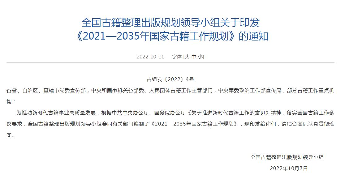中新網(wǎng)10月12日電 12日,據(jù)國家新聞出版署網(wǎng)站消息,全國古籍整理出版規(guī)劃領(lǐng)導(dǎo)小組會同有關(guān)部門編制了《2021—2035年國家古籍工作規(guī)劃》,其中提到,至2035年,古籍工作體制機(jī)制更加完善,以重大工程為引領(lǐng),加強(qiáng)古籍工作全局性謀劃,重點(diǎn)實(shí)施 《永樂大典》、敦煌文獻(xiàn)系統(tǒng)性保護(hù)整理出版工程等。