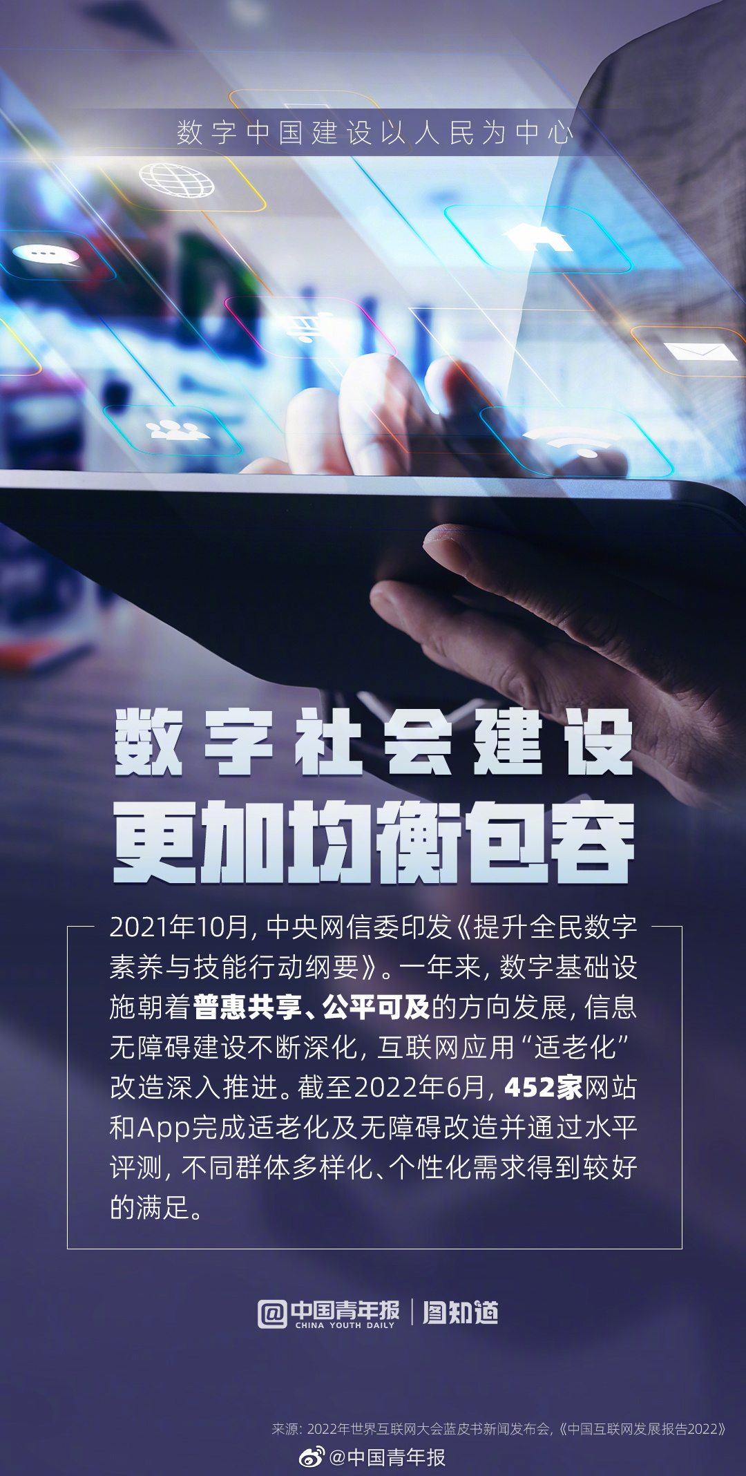 2022年世界互聯(lián)網(wǎng)大會今日發(fā)布了《中國互聯(lián)網(wǎng)發(fā)展報告2022》。報告中提到,一年以來,我國數(shù)字惠民便民取得了不小的成就,數(shù)字社會建設取得新的進展。公共服務更加智慧便捷,城鄉(xiāng)發(fā)展和治理模式不斷創(chuàng)新,數(shù)字社會建設更加均衡包容......數(shù)字化社會正在更廣范圍、更深程度提升人民群眾的獲得感、幸福感、安全感。