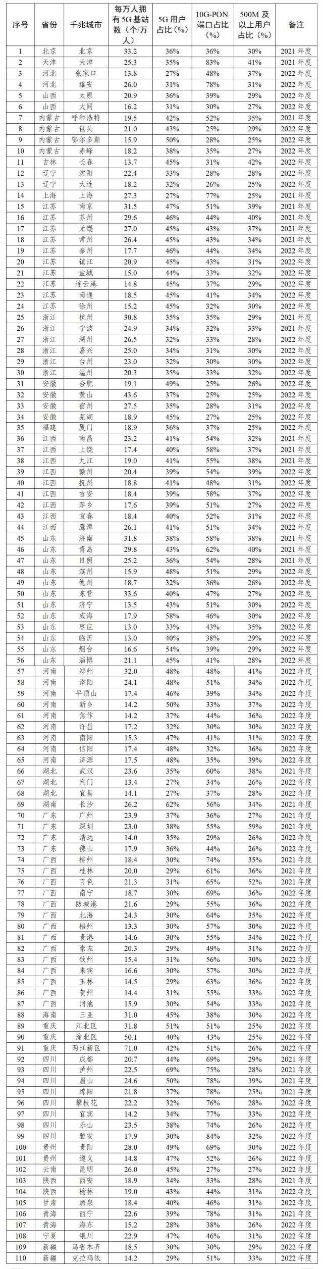 關(guān)于2022年千兆城市建設(shè)情況的通報