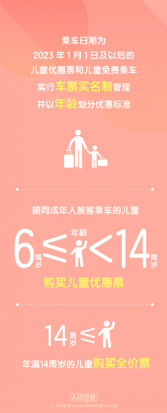 “中國鐵路”微信公眾號消息,新版《鐵路旅客運輸規(guī)程》將于2023年1月1日起施行。購買兒童票有哪些新變化?一起看看吧。