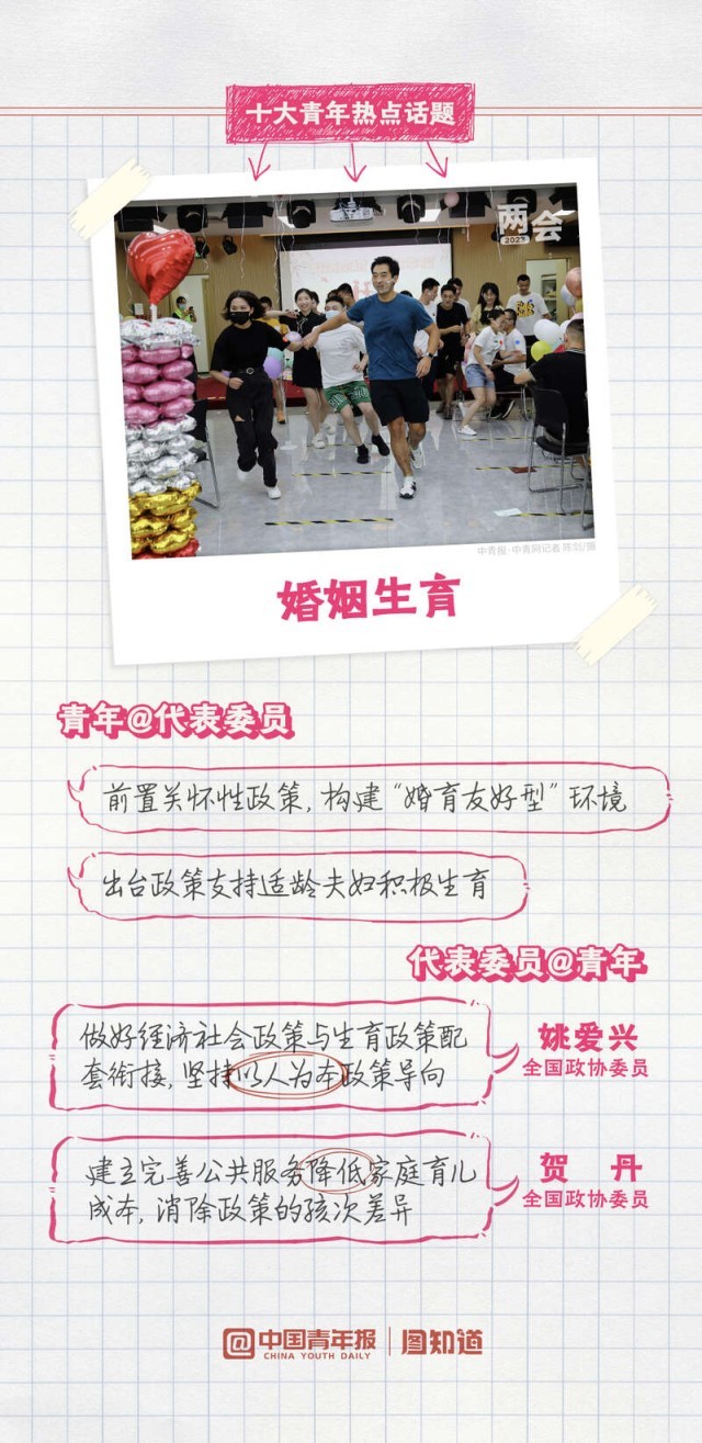 如何實現(xiàn)高質(zhì)量就業(yè)、如何破解“不敢生”、如何遏制網(wǎng)絡暴力……兩會前,團中央權益部、中國青年報社等機構聯(lián)合梳理了青年關心的十大熱點話題。這些話題也被代表委員關注,他們提出很多真知灼見。青年關心,代表委員關注,一起來看看代表委員怎么說。