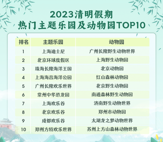 《報(bào)告》顯示,各地主題樂園、野生動(dòng)物園、海洋館清明假期期間的預(yù)訂量靠前,圍繞一些知名主題樂園推出的親子一日游線路也深受歡迎。