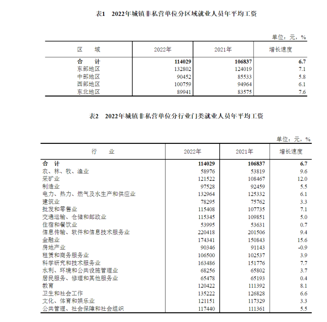 2022年全國(guó)城鎮(zhèn)非私營(yíng)單位就業(yè)人員年平均工資為114029元,比上年增加7192元,名義增長(zhǎng)[1]6.7%??鄢齼r(jià)格因素,2022年全國(guó)城鎮(zhèn)非私營(yíng)單位就業(yè)人員年平均工資實(shí)際增長(zhǎng)4.6%。