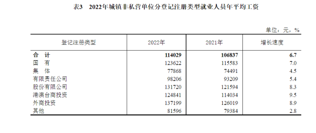 2022年全國(guó)城鎮(zhèn)非私營(yíng)單位就業(yè)人員年平均工資為114029元