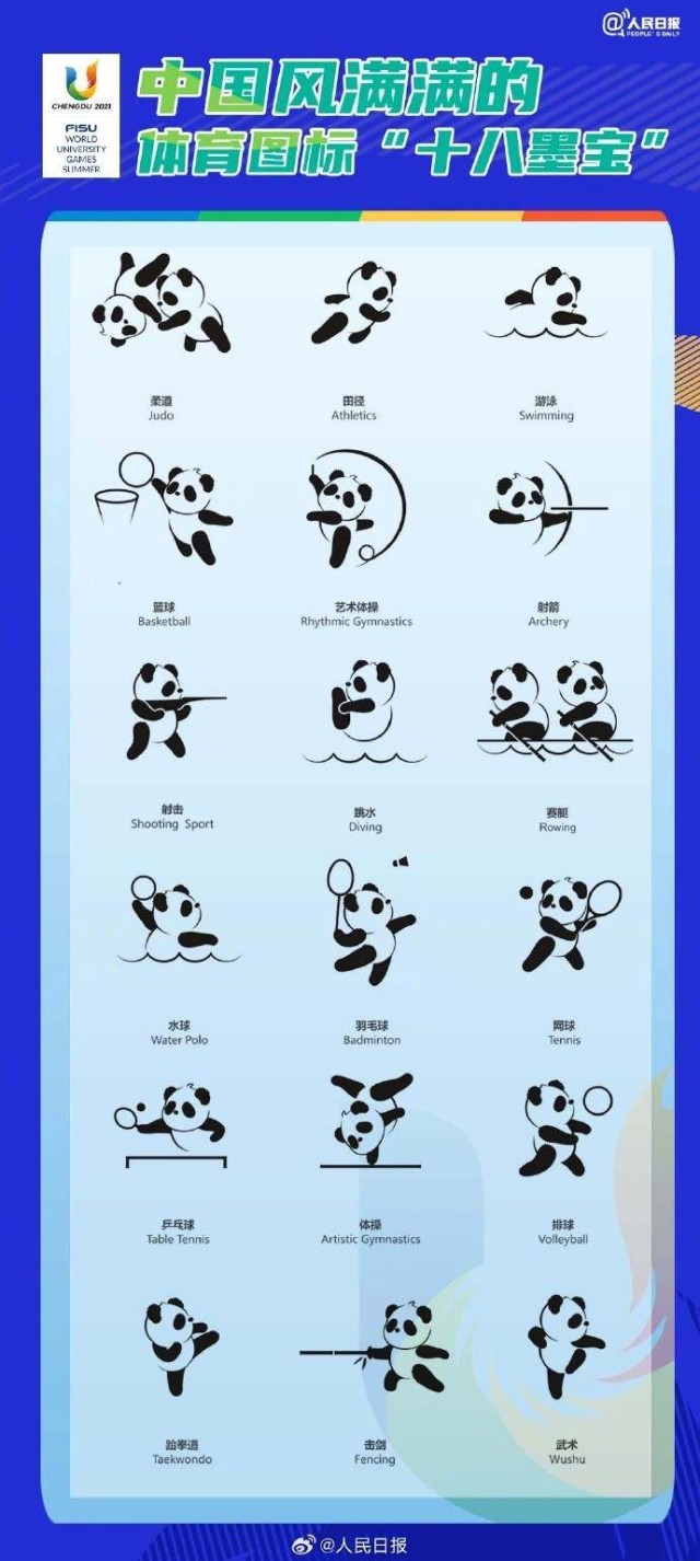 第31屆世界大學(xué)生夏季運(yùn)動(dòng)會(huì)將于7月28日—8月8日在四川成都舉辦?!叭貙殹薄叭鼗稹薄叭毓狻?,傻傻分不清?可愛的熊貓圖標(biāo),認(rèn)得出是哪個(gè)項(xiàng)目嗎?此外,這些體壇名將曾參加過大運(yùn)會(huì)!成都大運(yùn)會(huì)還有2周開幕,期待!