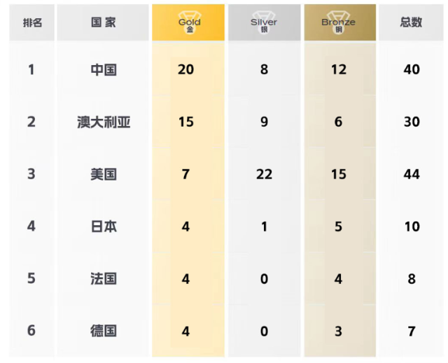 當(dāng)?shù)貢r(shí)間7月30日,2023世界游泳錦標(biāo)賽在日本福岡落下帷幕,中國隊(duì)共獲得20金8銀12銅,名列金牌榜第一、獎(jiǎng)牌榜第二。中國游泳隊(duì)收獲5金3銀8銅,取得新突破。狀態(tài)極佳的覃海洋成為歷史上第一位在單屆世錦賽上包攬男子50米、100米和200米蛙泳全部金牌的選手。中國跳水隊(duì)在13個(gè)項(xiàng)目中贏得12金4銀3銅。中國花樣游泳隊(duì)共獲得3金1銀1銅。