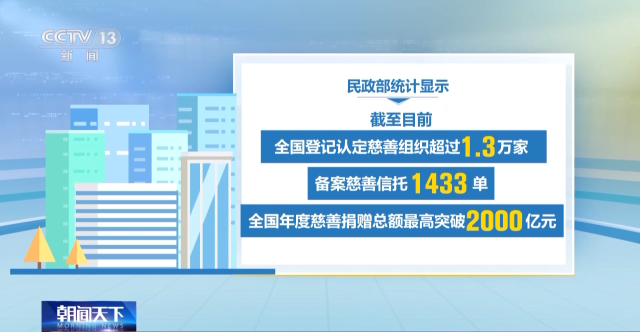 民政部統(tǒng)計顯示,截至目前,全國登記認(rèn)定慈善組織超過1.3萬家;備案慈善信托1433單;全國年度慈善捐贈總額最高突破2000億元。