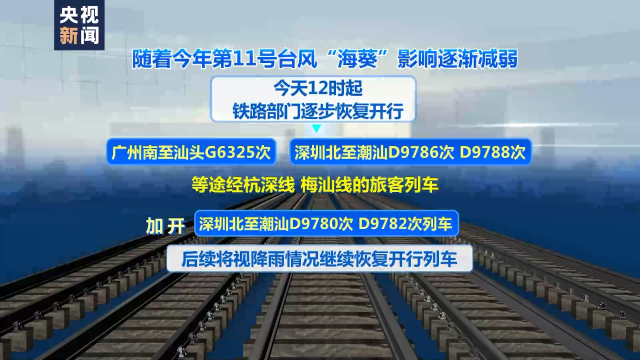 廣東:“??睖p弱 受影響列車(chē)陸續(xù)恢復(fù)開(kāi)行