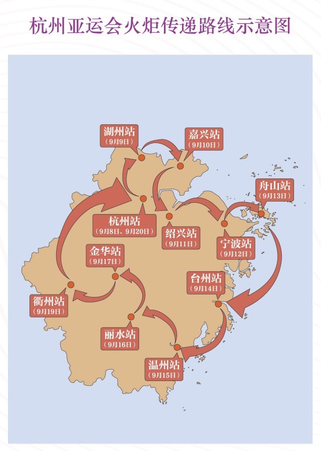 杭州首日的傳遞結(jié)束之后,就將開(kāi)啟浙江全省的傳遞,遍布11個(gè)地市,9月20日將回到杭州并完成最后一站傳遞。