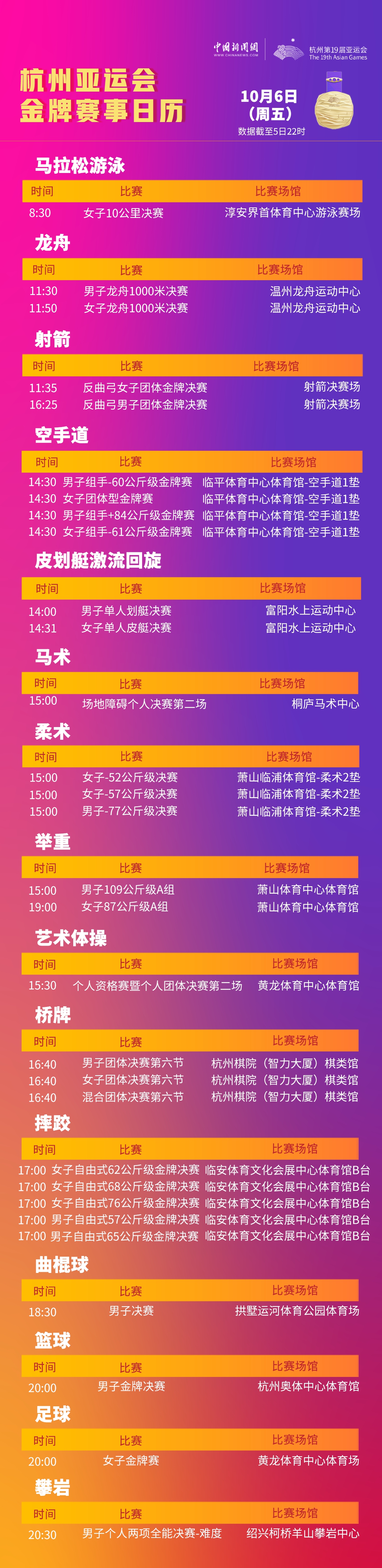 杭州亞運(yùn)會(huì)6日金牌賽程:30金懸念待解 霹靂舞開賽