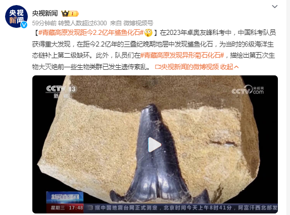在2023年卓奧友峰科考中,中國科考隊(duì)員獲得重大發(fā)現(xiàn),在距今2.2億年的三疊紀(jì)晚期地層中發(fā)現(xiàn)鯊魚化石,為當(dāng)時(shí)的6級(jí)海洋生態(tài)鏈補(bǔ)上第二級(jí)缺環(huán)。此外,隊(duì)員們?cè)?青藏高原發(fā)現(xiàn)異形菊石化石#,描繪出第五次生物大滅絕前一些生物類群已發(fā)生遺傳紊亂。