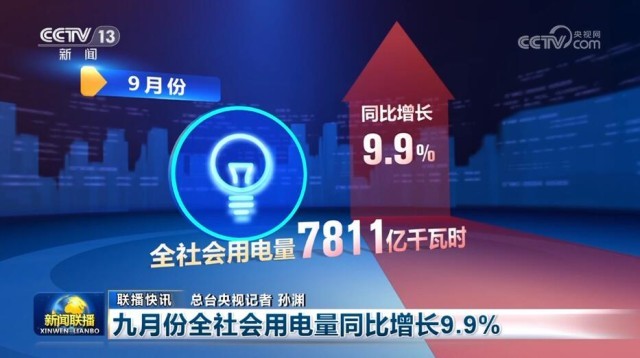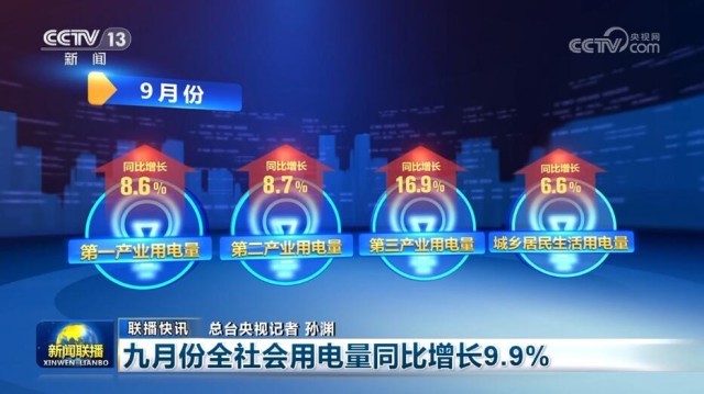 九月份全社會(huì)用電量同比增長9.9%
