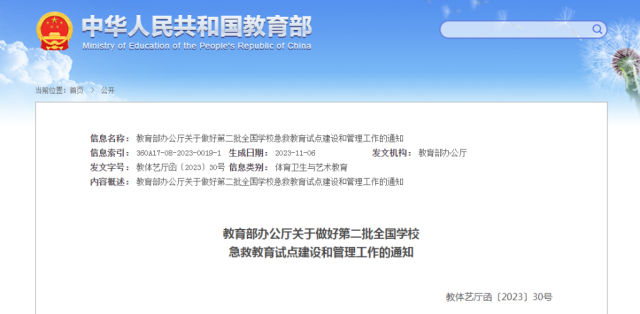 通知一并發(fā)布《第二批全國(guó)學(xué)校急救教育試點(diǎn)工作指南》,從總體要求、重點(diǎn)任務(wù)兩個(gè)方面部署推進(jìn)試點(diǎn)工作。