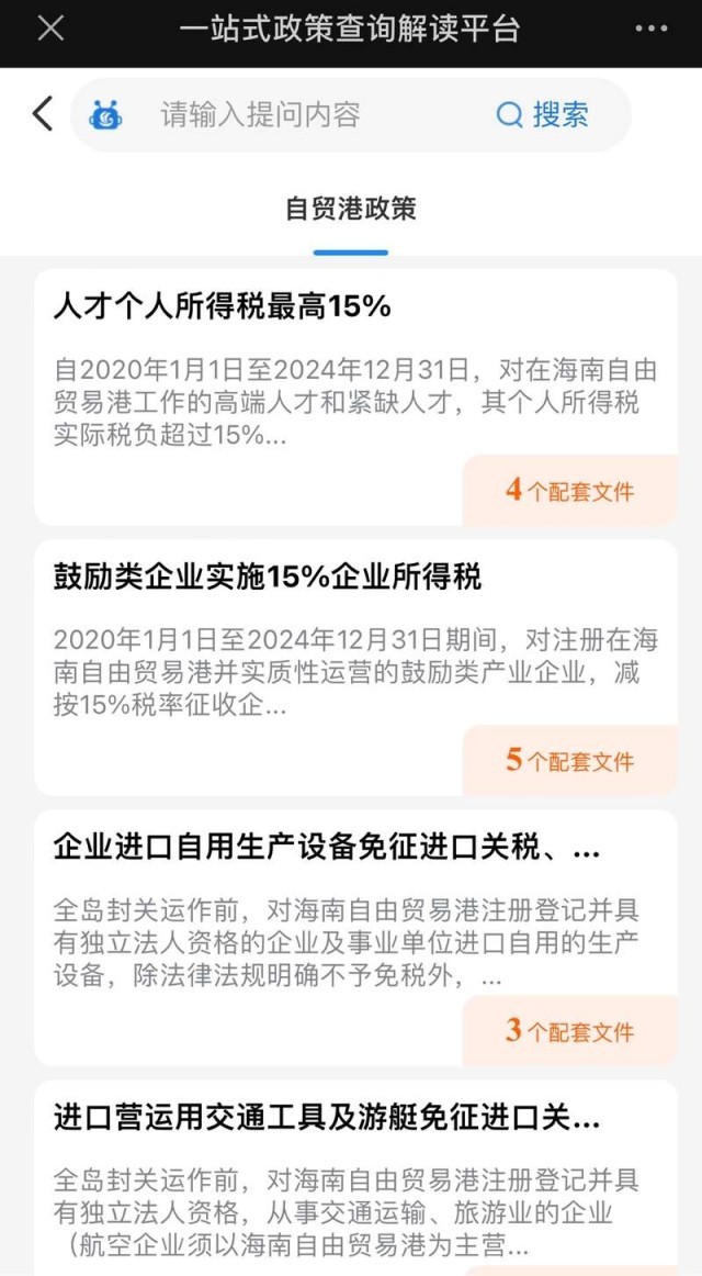 海南自由貿(mào)易港一站式政策查詢解讀平臺(tái)截圖。