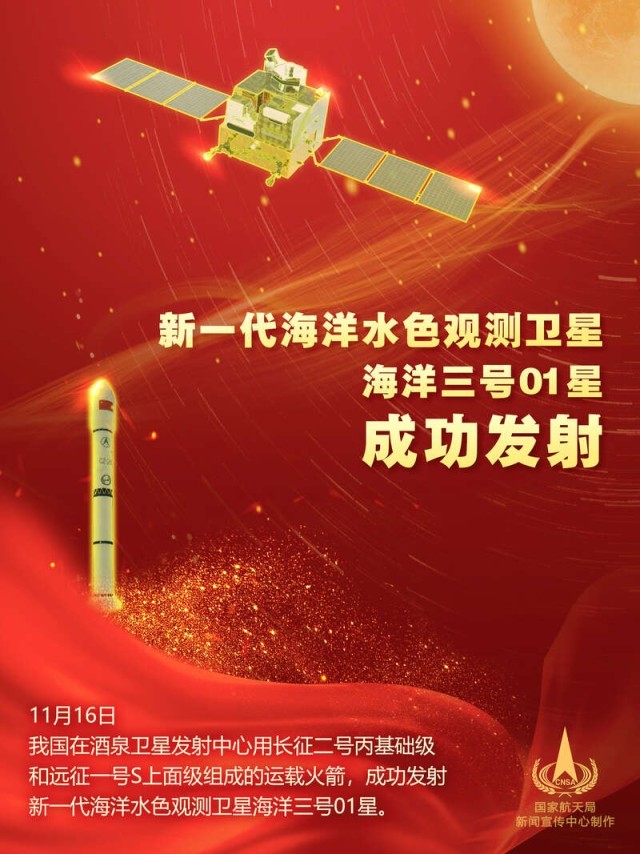 中國(guó)青年報(bào)客戶(hù)端北京11月16日電(張未 王豪 李儀 中青報(bào)·中青網(wǎng)記者 邱晨輝)北京時(shí)間11月16日11時(shí)55分,我國(guó)在酒泉衛(wèi)星發(fā)射中心用長(zhǎng)征二號(hào)丙基礎(chǔ)級(jí)和遠(yuǎn)征一號(hào)S上面級(jí)組成的運(yùn)載火箭,成功發(fā)射新一代海洋水色觀(guān)測(cè)衛(wèi)星海洋三號(hào)01星。該衛(wèi)星指標(biāo)達(dá)到國(guó)際水色遙感衛(wèi)星先進(jìn)水平,可滿(mǎn)足我國(guó)海洋環(huán)境監(jiān)測(cè)的主體業(yè)務(wù)需求,并能夠服務(wù)于生態(tài)文明建設(shè)、智慧海洋工程建設(shè)、“一帶一路”倡議等國(guó)家重大戰(zhàn)略需求。