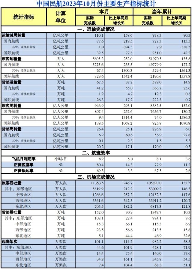 民航局:10月中國(guó)民航旅客運(yùn)輸量同比增長(zhǎng)252%