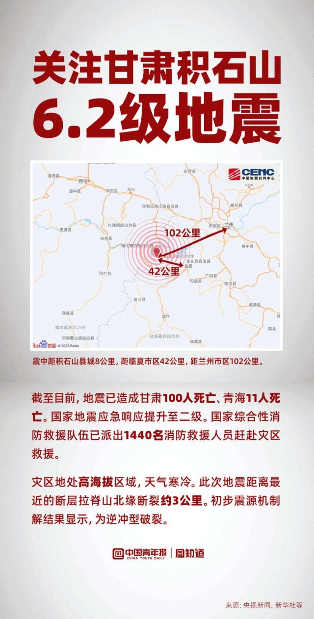圖知道|關(guān)注甘肅積石山6.2級地震:已造成至少111人死亡,救援進(jìn)行中