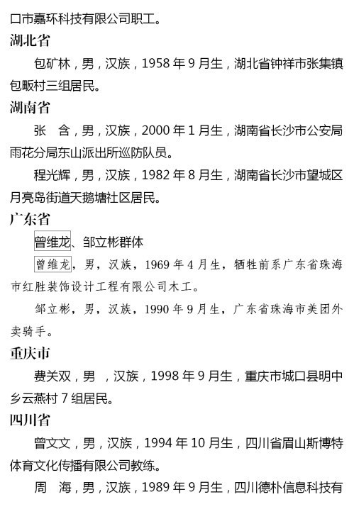 2024年1月4日,中央政法委在京發(fā)布2023年第四季度見義勇為勇士榜,根據(jù)網(wǎng)絡(luò)關(guān)注度和各地各單位選樹、經(jīng)過(guò)綜合評(píng)審,共有47位勇士光榮上榜。