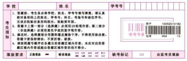 考生不得自行填涂“缺考標(biāo)記”欄,如下圖所示: