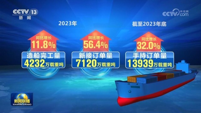 最新數(shù)據(jù)顯示,2023年我國造船完工量4232萬載重噸,同比增長11.8%;新承接訂單量7120萬載重噸,同比增長56.4%;截至2023年底,手持訂單量13939萬載重噸,同比增長32.0%,所有指標第一次實現(xiàn)2位數(shù)增長。