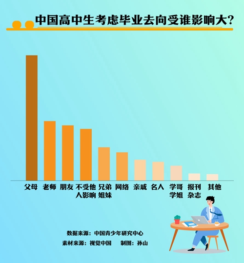 孫宏艷:首先,學(xué)校是職業(yè)生涯規(guī)劃教育的主要部門,學(xué)校把職業(yè)生涯規(guī)劃教育搞好了,學(xué)生能對自己和職業(yè)有準確的認知和定位,他們自然會選擇合適的職業(yè)和工作地。從這次的調(diào)查數(shù)據(jù)看,中國高中生已比過去更理性了,就業(yè)地首選已從北上廣這樣的國際大城市到所在地中心城市了。未來,隨著我國鄉(xiāng)村振興等政策的推進和城市的發(fā)展,青年也許會更愿意到所在地縣鎮(zhèn)村等基層去工作。這不僅依賴于政策和城市的發(fā)展,更依賴于青年對自我和職業(yè)的準確定位。