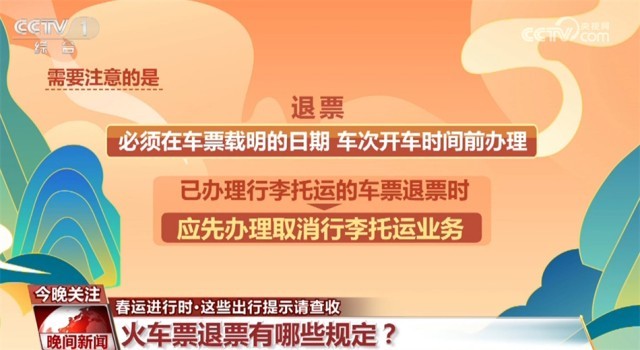 此外,受天氣影響,不少人的春運(yùn)回家計(jì)劃可能有變。那么,鐵路辦理退票有哪些規(guī)定呢?旅客可在車站售票窗口、12306網(wǎng)站和具備退票功能的自動(dòng)售票機(jī)辦理退票。需要注意的是,退票必須在車票載明的日期、車次開車時(shí)間前辦理。已辦理行李托運(yùn)的車票退票時(shí),應(yīng)先辦理取消行李托運(yùn)業(yè)務(wù)。此外,退票核收退票費(fèi),應(yīng)退票款將按照購(gòu)票時(shí)的支付方式退還。開車前8天(含)以上退票的,不收取退票費(fèi);票面乘車站開車時(shí)間前48小時(shí)以上的,按票價(jià)5%計(jì),24小時(shí)以上、不足48小時(shí)的,按票價(jià)10%計(jì),不足24小時(shí)的按票價(jià)20%計(jì)。