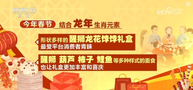 不僅如此,2024年春節(jié),結(jié)合龍年生肖元素,形狀多樣的醒獅龍花餑餑禮盒最受平臺(tái)消費(fèi)者青睞,而醒獅、葫蘆、柿子、鯉魚等多種樣式的面食,也讓禮盒更加豐富和喜慶。