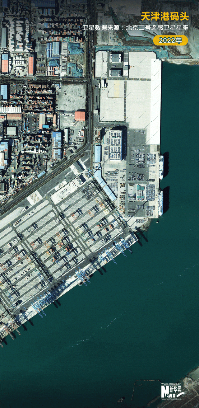 數(shù)據(jù)顯示,天津港2023年完成集裝箱吞吐量2217萬(wàn)標(biāo)準(zhǔn)箱,同比增長(zhǎng)5.5%,創(chuàng)歷史新高。衛(wèi)星見(jiàn)證,一批批待出口的貨物排列在天津港的碼頭上。我國(guó)外貿(mào)出口的火熱場(chǎng)景躍然圖上。