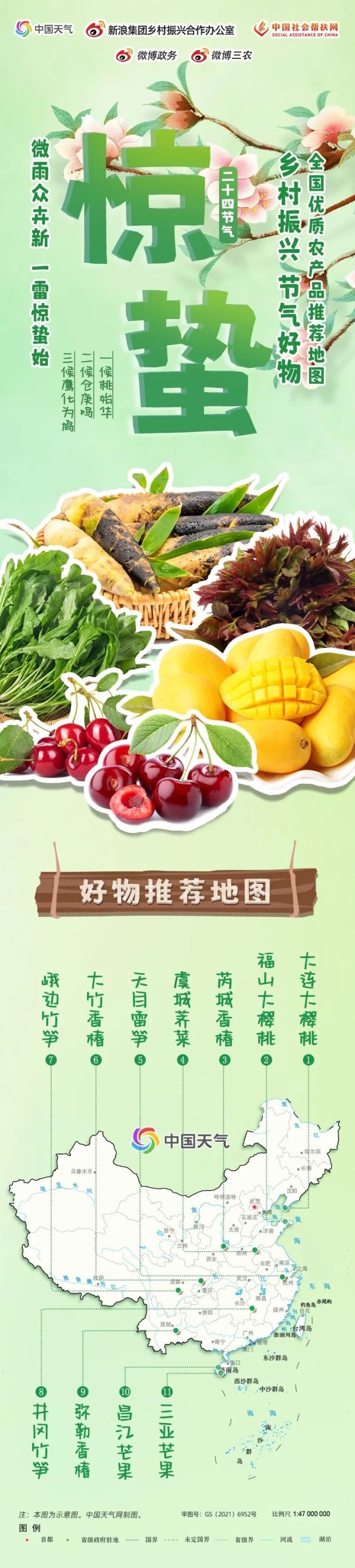 在這個(gè)春雷乍響,萬物生長(zhǎng)的節(jié)氣里,又有哪些春季的舌尖美味呢,來看看由中國(guó)天氣網(wǎng)、中國(guó)社會(huì)幫扶網(wǎng)聯(lián)合推出的“鄉(xiāng)村振興·節(jié)氣好物”全國(guó)優(yōu)質(zhì)農(nóng)產(chǎn)品推薦地圖驚蟄篇吧!