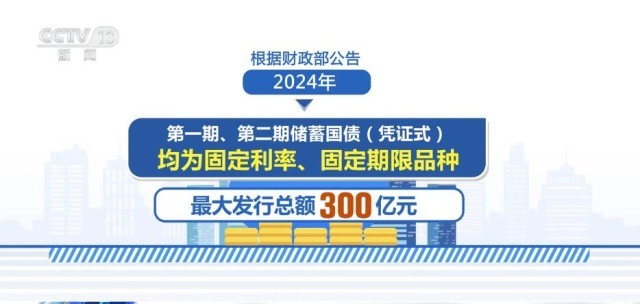 根據(jù)財(cái)政部公告,2024年第一期、第二期儲蓄國債(憑證式)均為固定利率、固定期限品種,最大發(fā)行總額300億元。其中,第一期期限為3年,最大發(fā)行額150億元,票面年利率2.38%;第二期期限為5年,最大發(fā)行額150億元,票面年利率2.5%。
