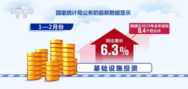 隨著增發(fā)國債項目的落地實施和支撐災(zāi)后應(yīng)急恢復(fù)重建資金的陸續(xù)下達,基礎(chǔ)設(shè)施投資增速小幅回升。國家統(tǒng)計局公布的最新數(shù)據(jù)顯示,1—2月份,基礎(chǔ)設(shè)施投資同比增長6.3%,增速比2023年全年加快0.4個百分點。其中,水利管理業(yè)投資增長13.7%、教育行業(yè)投資增長12.1%、基礎(chǔ)設(shè)施等民生補短板投資保持良好增長態(tài)勢。
