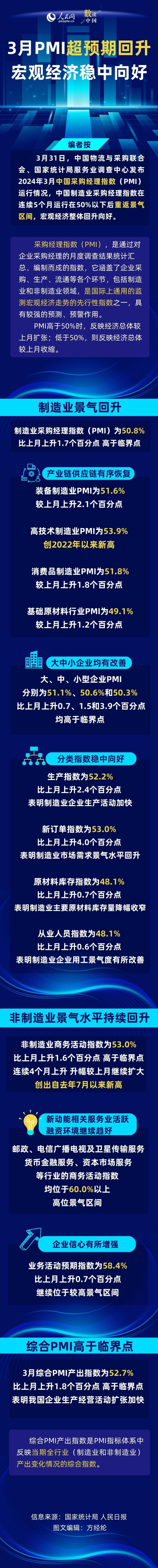 數(shù)讀中國|3月PMI超預(yù)期回升 宏觀經(jīng)濟穩(wěn)中向好