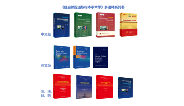 2023年,由人民衛(wèi)生出版社出版的以中文為主體,英、韓、日、俄、法相配套的五大語(yǔ)種NOSES手術(shù)系列專著《經(jīng)自然腔道取標(biāo)本手術(shù)學(xué)》亮相第75屆法蘭克福國(guó)際書(shū)展,獲多個(gè)參展國(guó)高度評(píng)價(jià)。