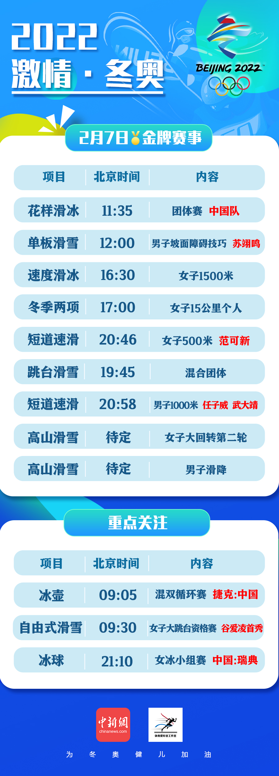2月7日冬奧看點:蘇翊鳴爭冠、谷愛凌首秀