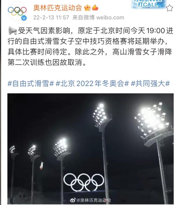 中新網(wǎng)張家口2月13日電(記者王禹 陳林)根據(jù)國際奧委會官方消息,受天氣因素影響,原定于北京時間今天19:00進行的自由式滑雪女子空中技巧資格賽將延期舉辦,具體比賽時間待定。中國選手徐夢桃孔凡鈺邵琪將參與該項目的角逐。除此之外,高山滑雪女子滑降第二次訓(xùn)練也因故取消。在此之前,中國選手谷愛凌參加的自由式滑雪女子坡面障礙技巧資格賽也因天氣原因推遲。