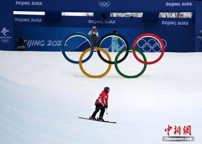 2月17日上午,北京冬奧會自由式滑雪女子U型場地技巧資格賽舉行,谷愛凌在兩輪比賽中分別跳出93.75分和95.50分,晉級決賽。圖為谷愛凌在比賽中。中新社記者 翟羽佳 攝