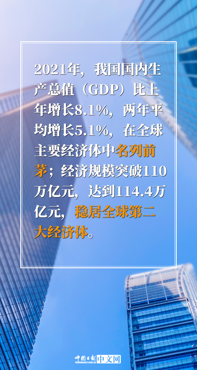 2021年,我國成功戰(zhàn)勝疫情等多重挑戰(zhàn),經濟實力、社會生產力和綜合國力穩(wěn)步提高,改革開放創(chuàng)新深入推進,民生福祉持續(xù)提升,實現(xiàn)了“十四五”良好開局。最新發(fā)布的《2021年國民經濟和社會發(fā)展統(tǒng)計公報》顯示,2021年,我國國內生產總值(GDP)比上年增長8.1%,兩年平均增長5.1%,在全球主要經濟體中名列前茅;連續(xù)5年蟬聯(lián)全球貨物貿易第一位;主要工業(yè)產品產量穩(wěn)居世界首位……我國遞出了一份亮眼的“成績單”。