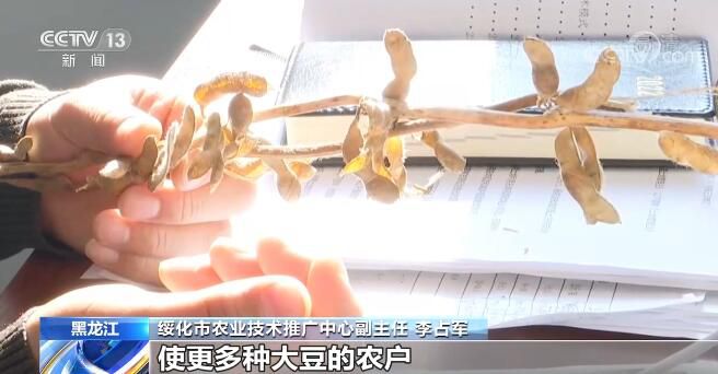 黑龍江綏化市農(nóng)業(yè)技術(shù)推廣中心副主任 李占軍:到農(nóng)戶當(dāng)中進行現(xiàn)場培訓(xùn),使更多種大豆的農(nóng)戶懂得大豆提高單產(chǎn)的技術(shù),使得農(nóng)民們多種豆、種好豆、保豐收。