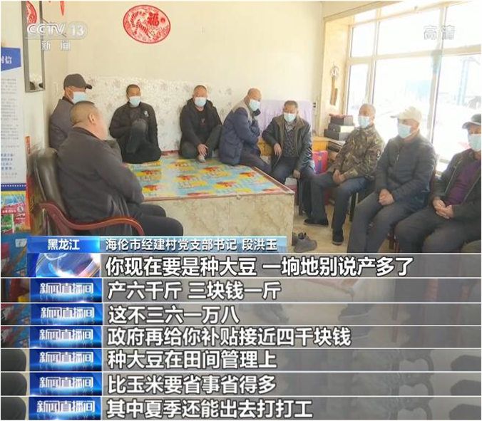 海倫市經(jīng)建村村民 邵廣金:肯定種大豆了,而且今年補貼還挺多,我們收入也提高了,也為國家作貢獻了。