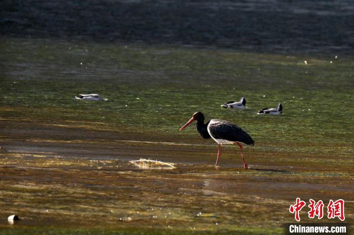 圖為在北京發(fā)現(xiàn)的黑鸛。 北京園林綠化局供圖
