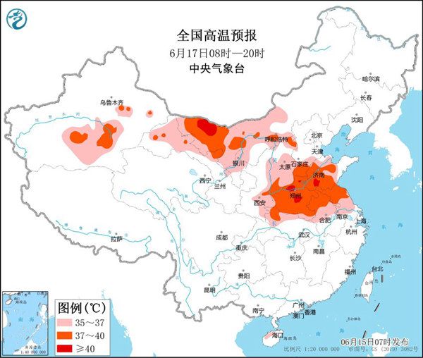 根據(jù)中央氣象臺預報,今天起至22日,北方多地將出現(xiàn)持續(xù)性高溫天氣,17至18日為最強時段。河北、河南、山東、湖北、江蘇、安徽、內(nèi)蒙古、陜西、山西、寧夏、新疆、甘肅等12省區(qū)部分地區(qū)日最高氣溫可達35℃至38℃,局部可達40℃左右。