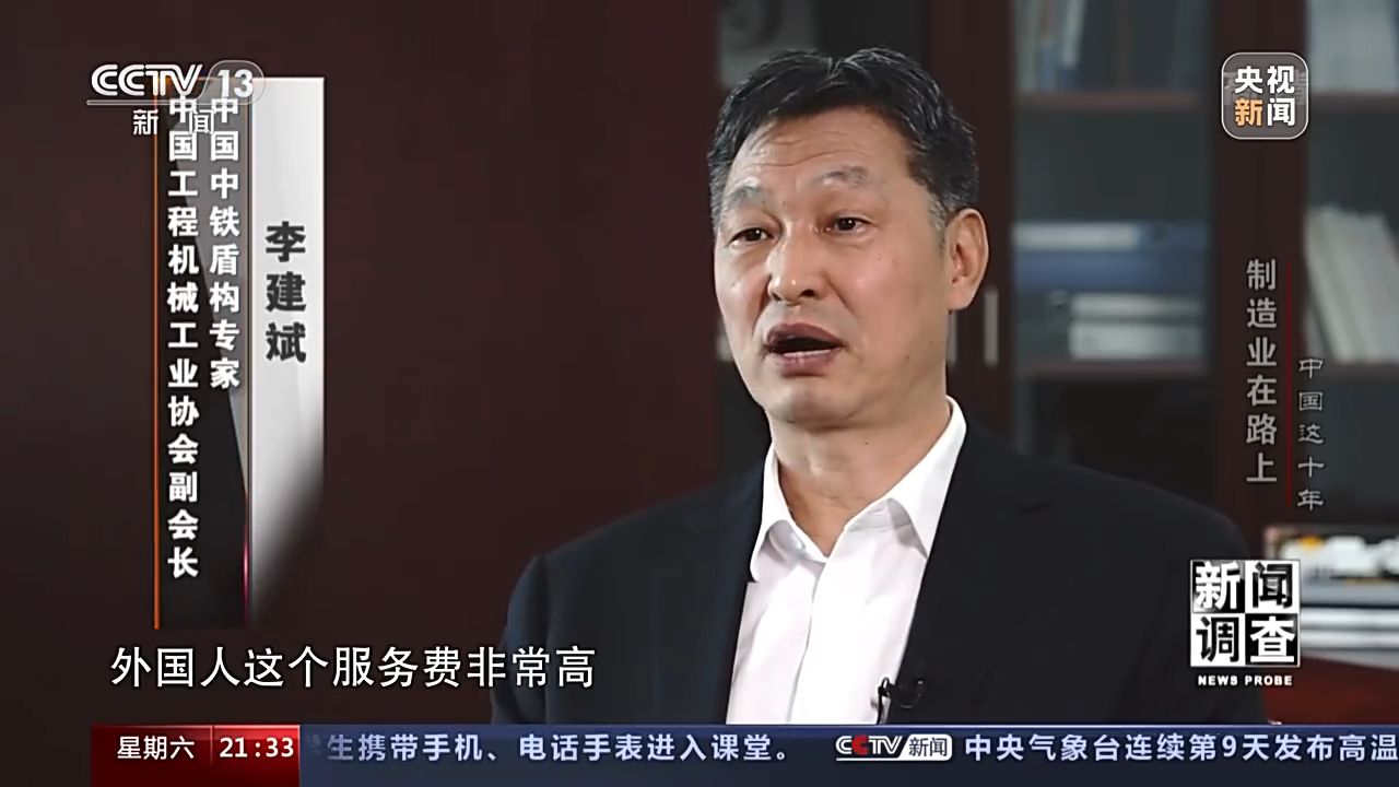 中國(guó)工程機(jī)械工業(yè)協(xié)會(huì)副會(huì)長(zhǎng) 中國(guó)中鐵盾構(gòu)專家 李建斌:兩臺(tái)將近七個(gè)億,外國(guó)人這個(gè)服務(wù)費(fèi)非常高,服務(wù)的時(shí)間非常短,每天就是八小時(shí),過(guò)了人家不上班,我們是三班制,他是一班制,機(jī)器壞了我們就要等,這個(gè)是對(duì)我們刺激非常大,你不掌握技術(shù),所以說(shuō)你處處受制于人。