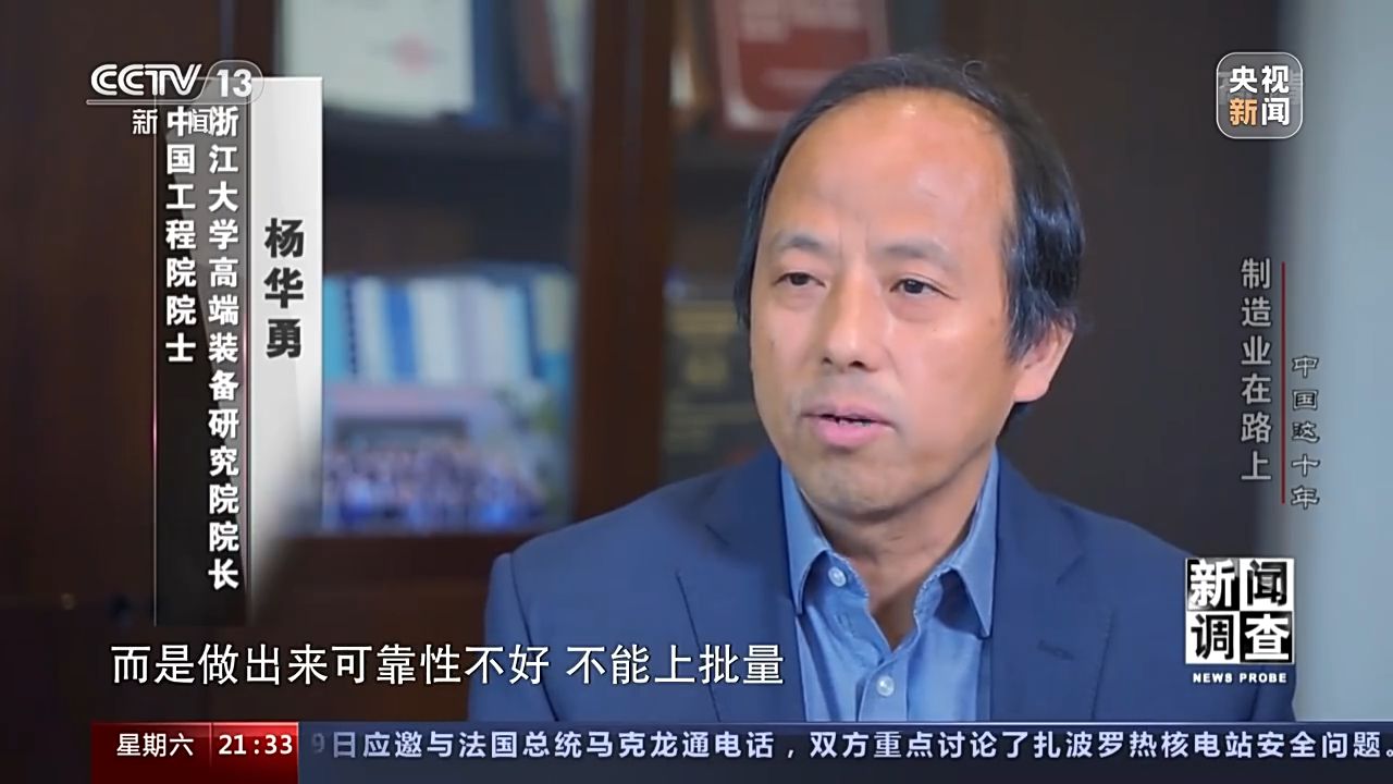中國(guó)工程院院士 浙江大學(xué)高端裝備研究院院長(zhǎng) 楊華勇:2002、2003年的時(shí)候,說(shuō)一年需要三十臺(tái),我們就覺(jué)得三十臺(tái),那都是最大膽的論證,沒(méi)想到后來(lái)跟高鐵上來(lái),然后鐵路,西氣東輸,南水北調(diào),都要。