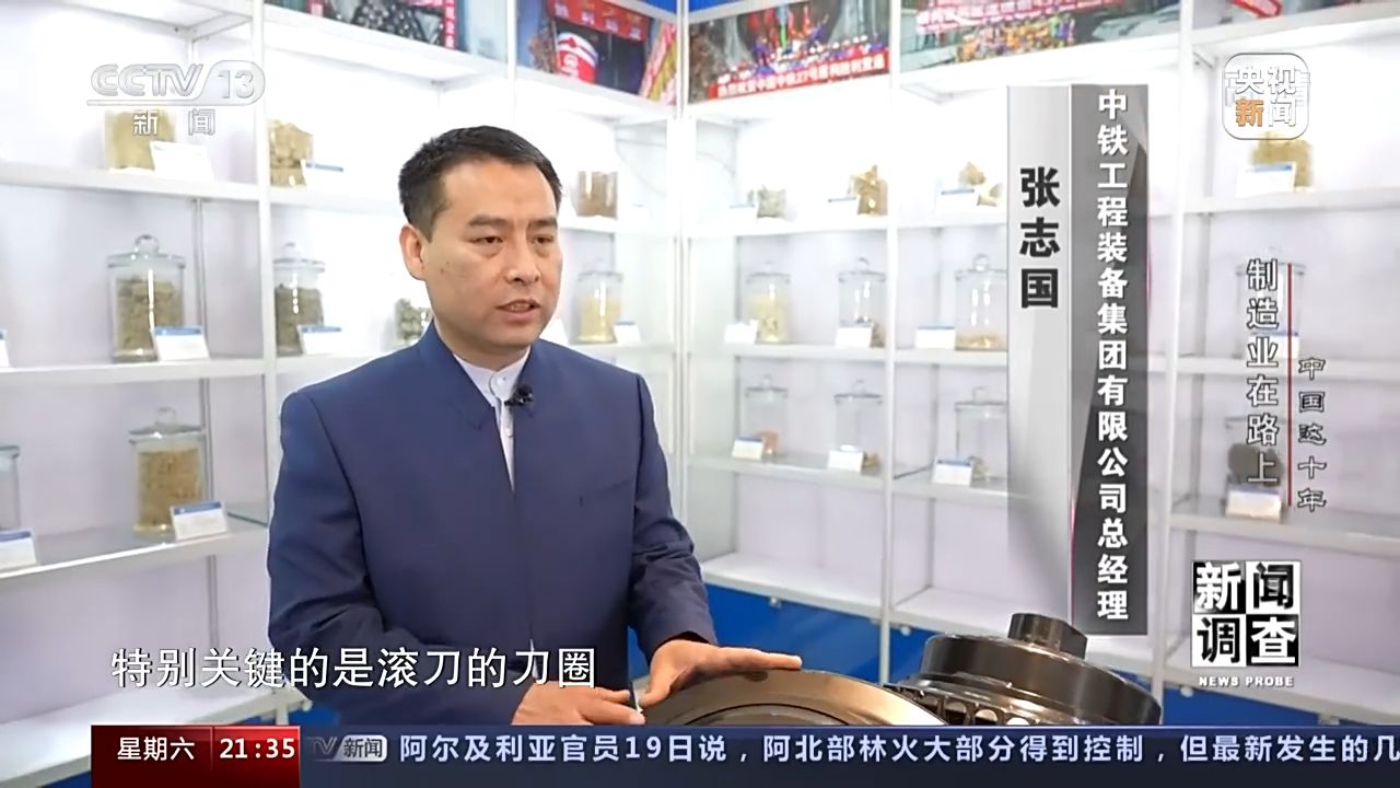 中鐵工程裝備集團(tuán)有限公司總經(jīng)理 張志國(guó):我們?cè)谘芯窟@個(gè)刀圈的時(shí)候和清華大學(xué)等大的院校,專業(yè)的院校進(jìn)行合作,經(jīng)過(guò)我們實(shí)驗(yàn)以后我們2018年實(shí)現(xiàn)了國(guó)產(chǎn)化,目前整個(gè)中國(guó)市場(chǎng)上的刀具國(guó)產(chǎn)的刀具占到了90%。