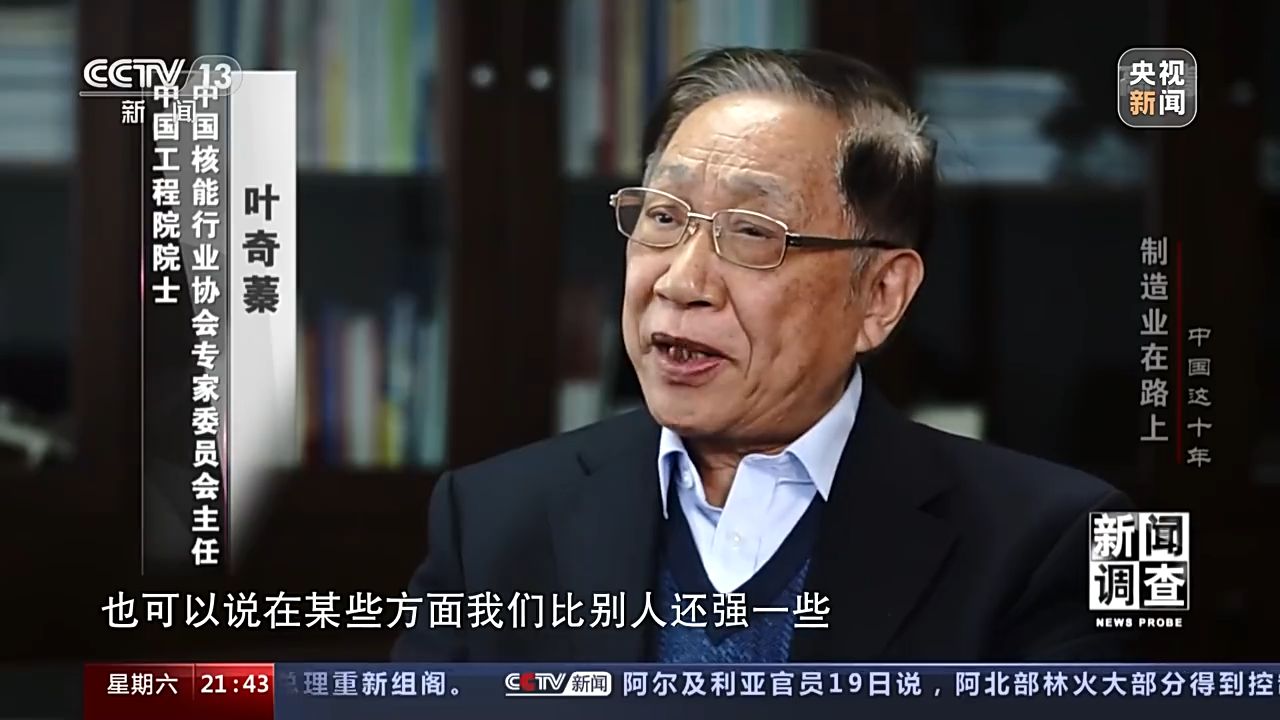 中國(guó)工程院院士 中國(guó)核能行業(yè)協(xié)會(huì)專家委員會(huì)主任 葉奇蓁:從總的技術(shù)水平可以這樣說(shuō),我們已經(jīng)從跟跑進(jìn)入了并跑,也可以說(shuō)在某些方面我們比別人還強(qiáng)一些。