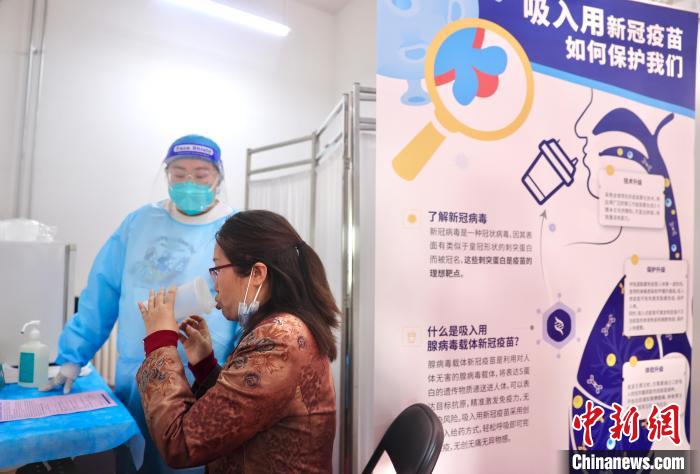 圖為北京市豐臺(tái)區(qū)成壽寺街道吸入用新冠疫苗接種現(xiàn)場(chǎng)?!≈行律缫缀7?攝