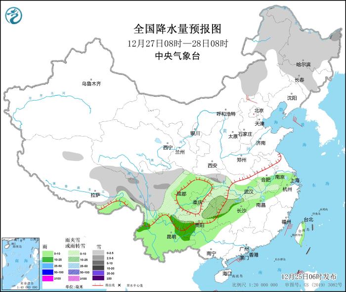 全國降水量預(yù)報(bào)圖(12月27日08時(shí)-28日08時(shí))